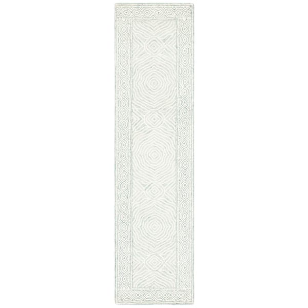 Roslyn Green/Blue 2 ft. x 9 ft. Border Geometric Runner Rug