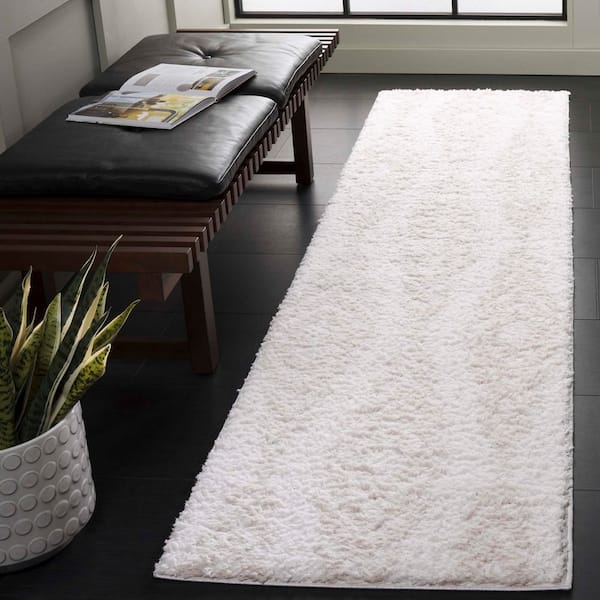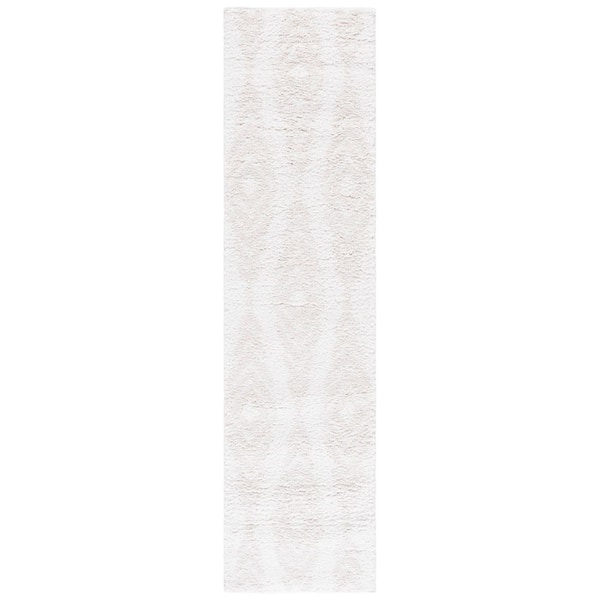 Rumi Shag 2 ft. x 8 ft. Ivory/Light Beige Diamond Chevron Runner Rug