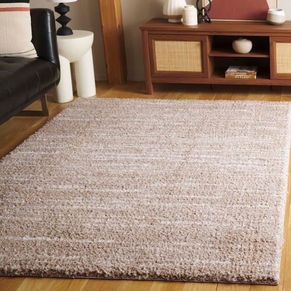 Rumi Shag 4 ft. x 6 ft. Beige/Ivory Abstract Striped Area Rug