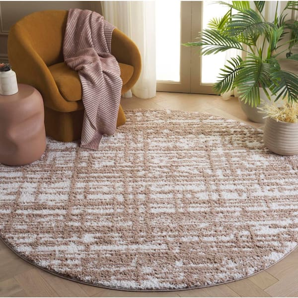 Rumi Shag 7 ft. x 7 ft. Beige/Ivory Distressed Round Area Rug