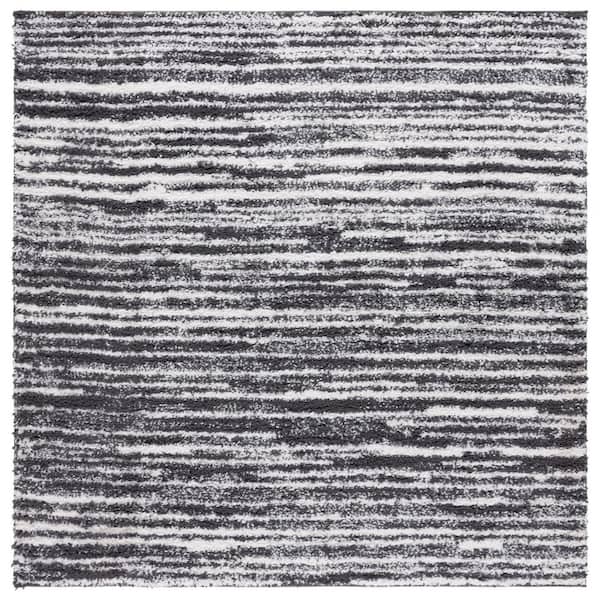 Rumi Shag 7 ft. x 7 ft. Charcoal/Ivory Abstract Striped Square Area Rug