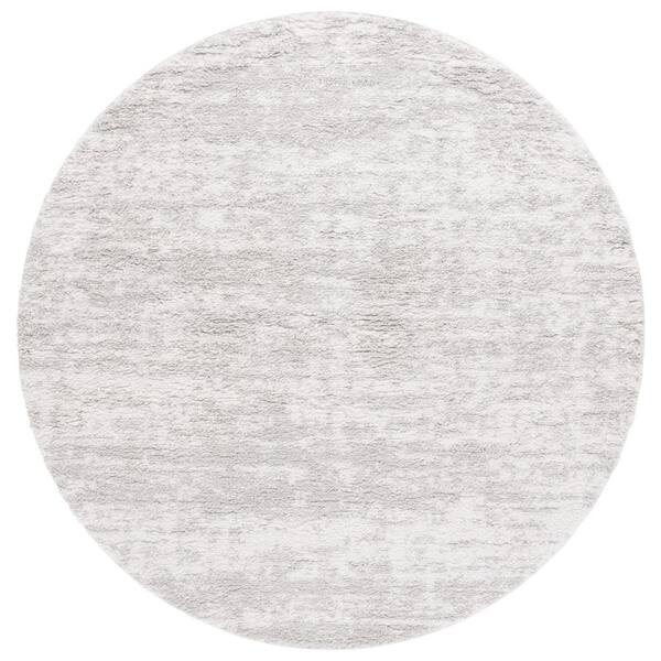 Rumi Shag 7 ft. x 7 ft. Gray/Ivory Distressed Abstract Round Area Rug