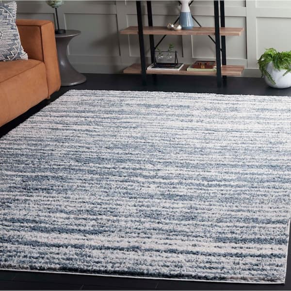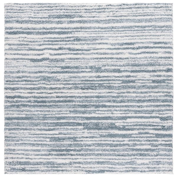 Rumi Shag 7 ft. x 7 ft. Light Blue/Ivory Abstract Striped Square Area Rug