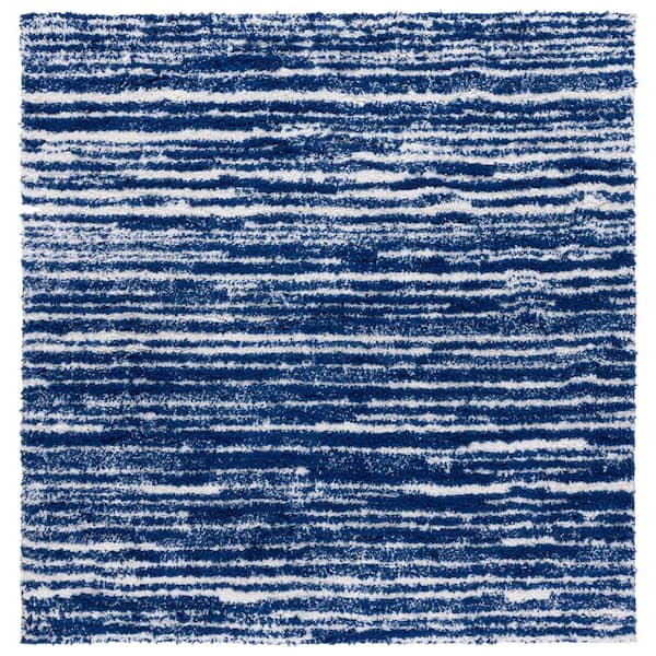 Rumi Shag 7 ft. x 7 ft. Navy/Ivory Abstract Striped Square Area Rug