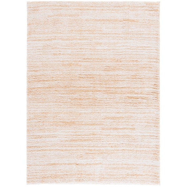 Rumi Shag 9 ft. x 12 ft. Gold/Ivory Abstract Striped Area Rug