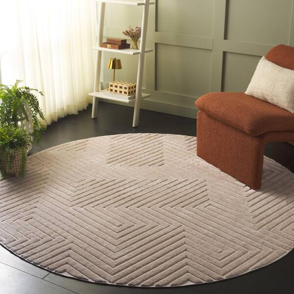 Selena 7 ft. x 7 ft. Beige Solid Geometric Round Area Rug