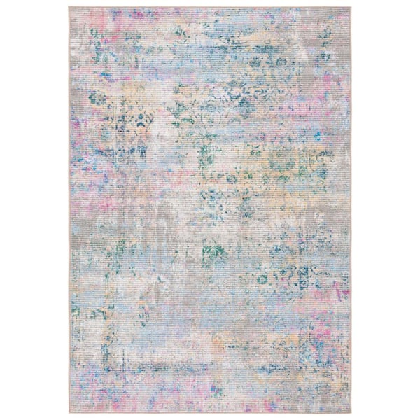 Sequoia Gray/Pink 8 ft. x 10 ft. Machine Washable Distressed Abstract Area Rug