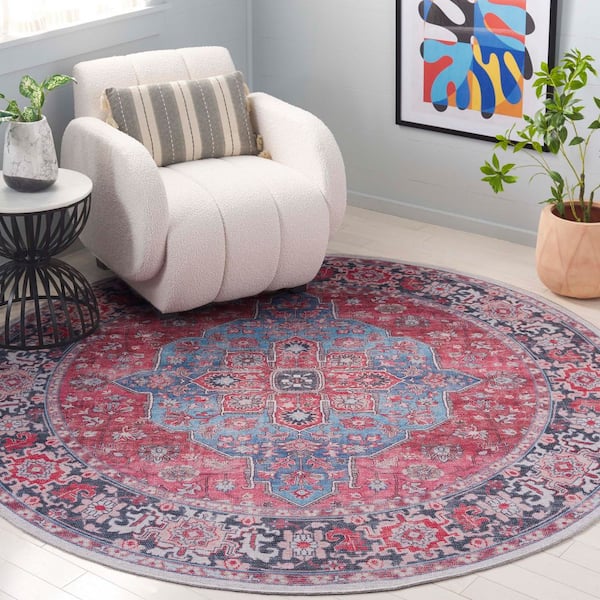 Serapi Blue/Rust 7 ft. x 7 ft. Machine Washable Medallion Floral Round Area Rug
