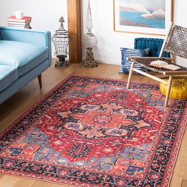 Serapi Red/Blue 7 ft. x 9 ft. Machine Washable Bohemian Floral Area Rug