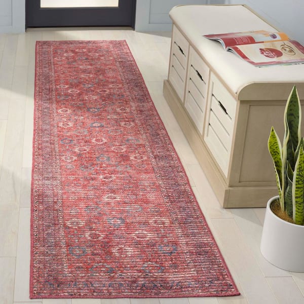 Serapi Rust/Blue 2 ft. x 8 ft. Machine Washable Border Ornate Runner Rug