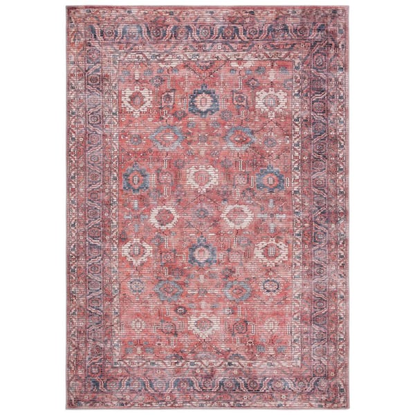 Serapi Rust/Blue 5 ft. x 8 ft. Machine Washable Border Ornate Area Rug