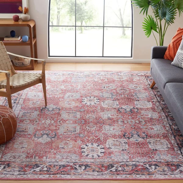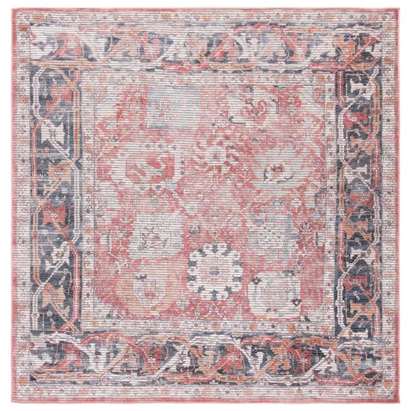 Serapi Rust/Gray 7 ft. x 7 ft. Machine Washable Border Ornate Square Area Rug