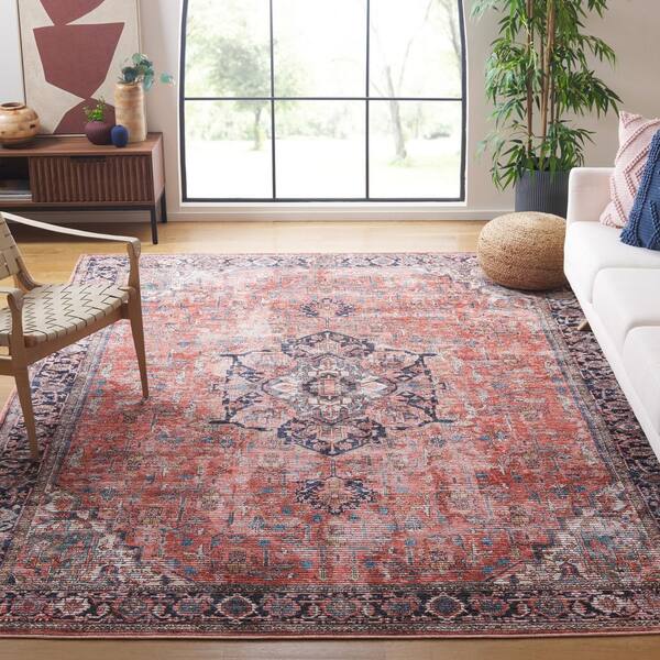 Serapi Rust/Navy 7 ft. x 7 ft. Machine Washable Border Ornate Square Area Rug