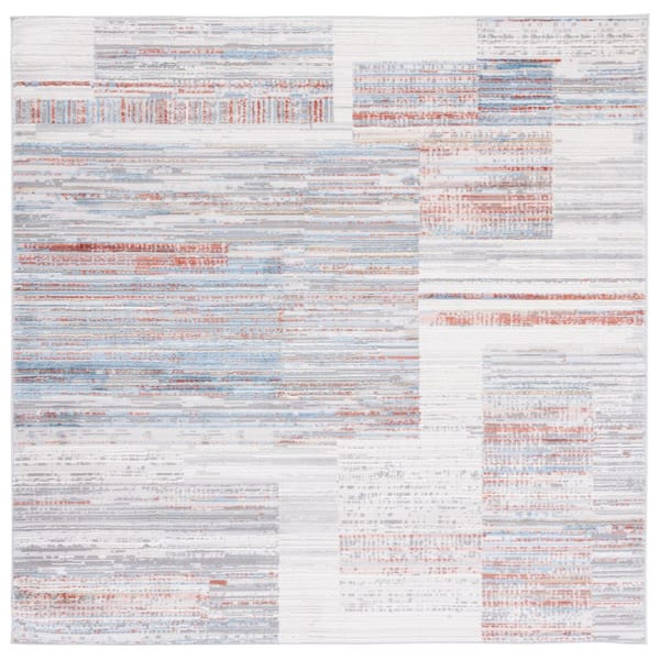 Shivan 7 ft. x 7 ft. Ivory/Rust Abstract Geometric Striped Square Area Rug