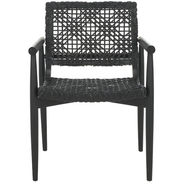 Sianna Black Teak/Black Leather Weave Laid-Back Arm Chair
