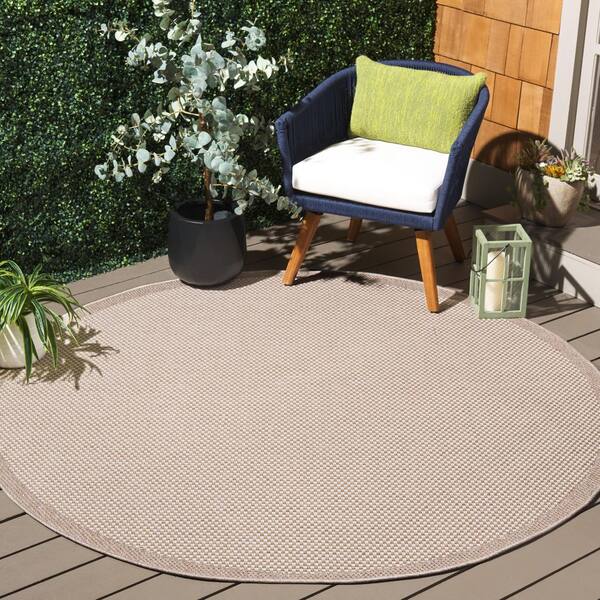 Sisal All-Weather Ivory/Beige 7 ft. x 7 ft. Solid Border Round Indoor/Outdoor Area Rug