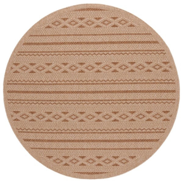 Sisal All-Weather Natural/Brown 7 ft. x 7 ft. Striped Chevron Geometric Round Indoor/Outdoor Area Rug