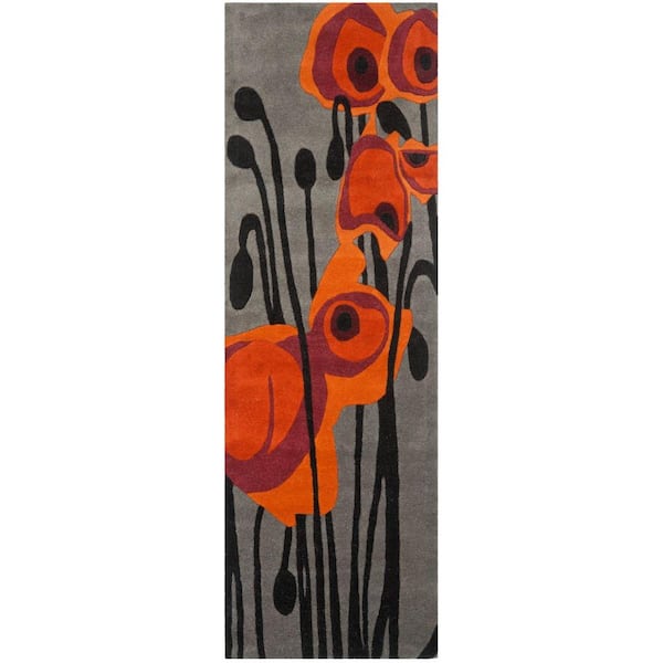 Soho Grey/Orange 3 ft. x 6 ft. Floral Runner Rug