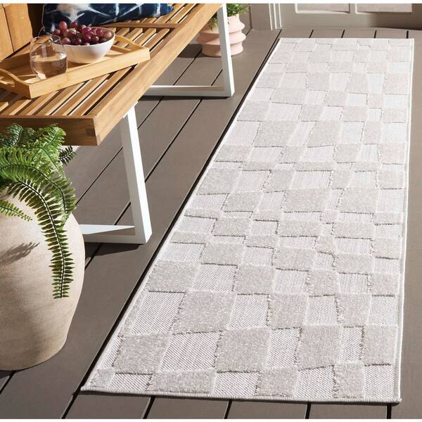 Stella Ivory 2 ft. x 8 ft. High-Low Abstract Geometric Indoor/Outdoor Runner Rug