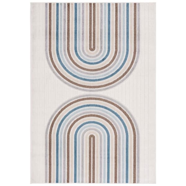 Stella Ivory/Brown Blue 8 ft. x 10 ft. Striped Arches Indoor/Outdoor Area Rug