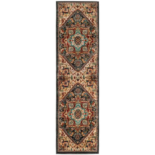 Summit Dark Gray/Red 2 ft. x 12 ft. Border Runner Rug