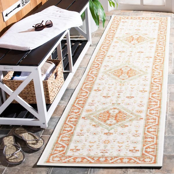 Sunrise Ivory/Rust Sage 2 ft. x 8 ft. Floral Border Reversible Indoor/Outdoor Runner Rug