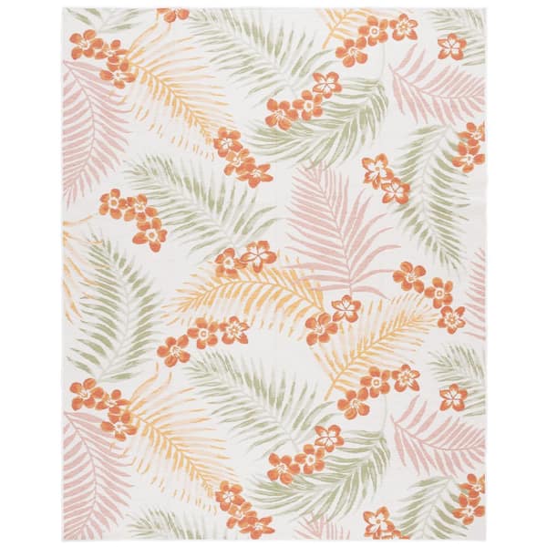 Sunrise Ivory/Rust Sage 8 ft. x 10 ft. Oversized Tropical Reversible Indoor/Outdoor Area Rug