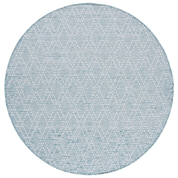 Sunset Aqua/Beige 7 ft. x 7 ft. Geometric Diamond Round Indoor/Outdoor Area Rug