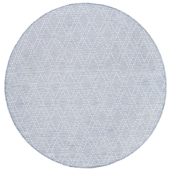 Sunset Blue/Gray 7 ft. x 7 ft. Geometric Diamond Round Indoor/Outdoor Area Rug