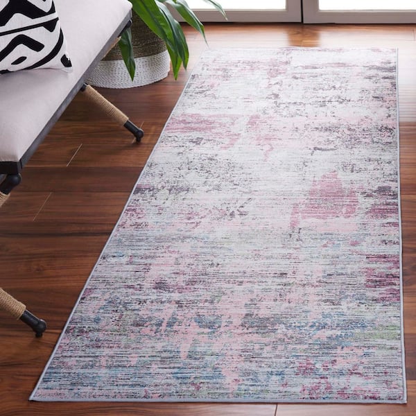 Tacoma Plum/Green 3 ft. x 10 ft. Machine Washable Distressed Abstract Runner Rug
