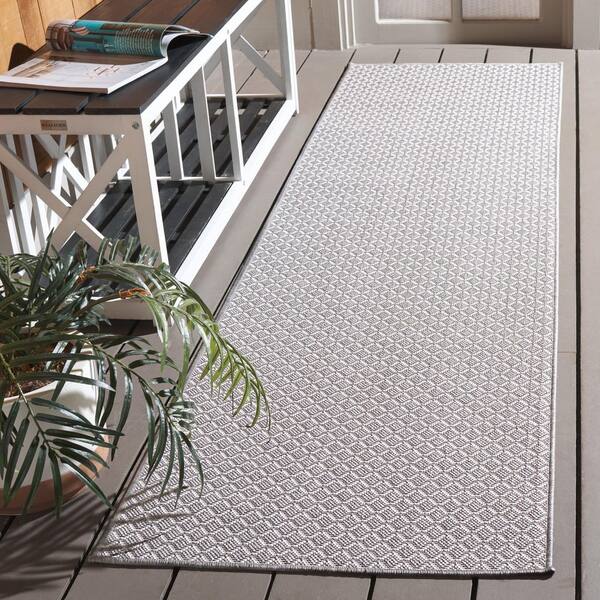 Terrace Gray/Ivory 2 ft. x 8 ft. Geometric Diamond Indoor/Outdoor Runner Rug