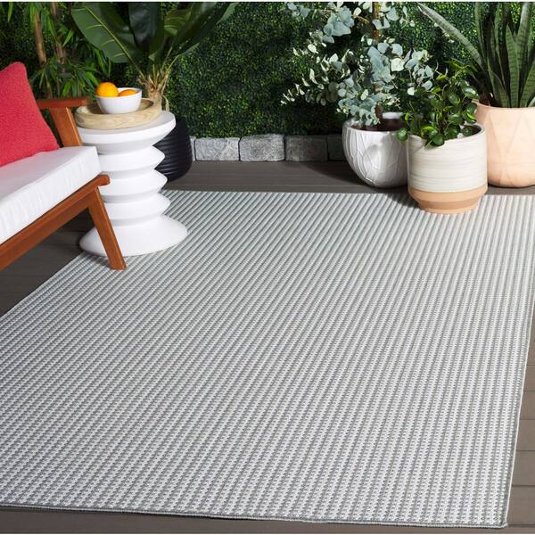 Terrace Gray/Ivory 7 ft. x 7 ft. Geometric Striped Square Indoor/Outdoor Area Rug