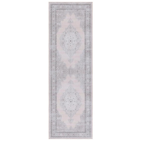Tucson Beige/Light Green 3 ft. x 8 ft. Machine Washable Border Floral Runner Rug