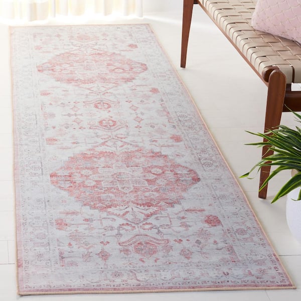 Tucson Beige/Rust 3 ft. x 8 ft. Machine Washable Distressed Floral Medallion Runner Rug