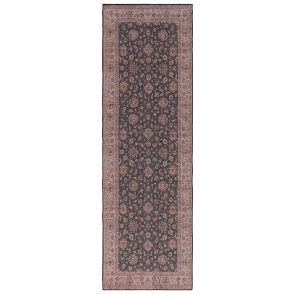 Tucson Dark Gray/Beige 3 ft. x 6 ft. Machine Washable Ornate Floral Border Runner Rug