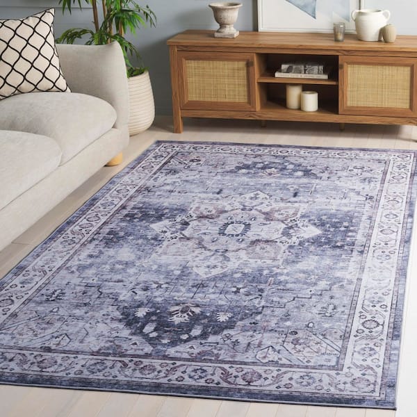 Tucson Gray/Light Purple 9 ft. x 12 ft. Machine Washable Border Aztec Medallion Area Rug