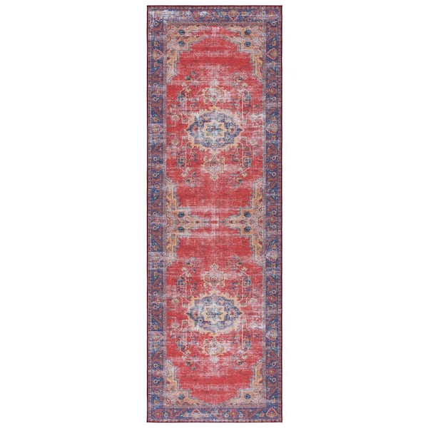 Tucson Red/Navy 3 ft. x 8 ft. Machine Washable Medallion Floral Distressed Runner Rug