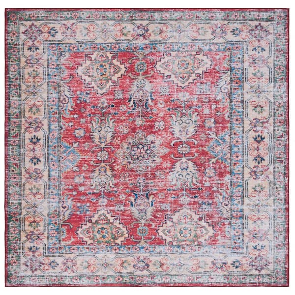 Tucson Rust/Beige 6 ft. x 6 ft. Machine Washable Border Floral Distressed Square Area Rug
