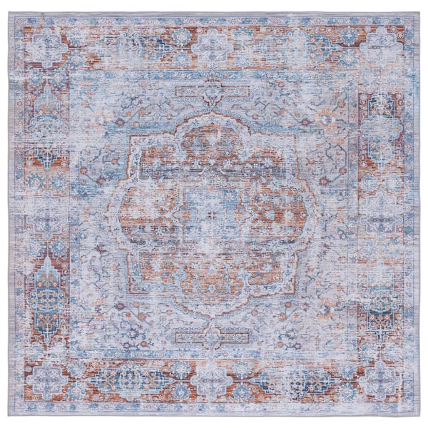 Tuscon Beige/Rust 6 ft. x 6 ft. Machine Washable Distressed Border Square Area Rug