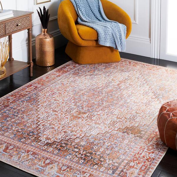 Tuscon Beige/Rust 8 ft. x 10 ft. Machine Washable Geometric Border Floral Area Rug