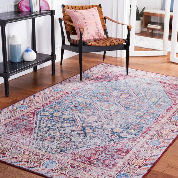 Tuscon Blue/Red 8 ft. x 10 ft. Machine Washable Striped Border Area Rug