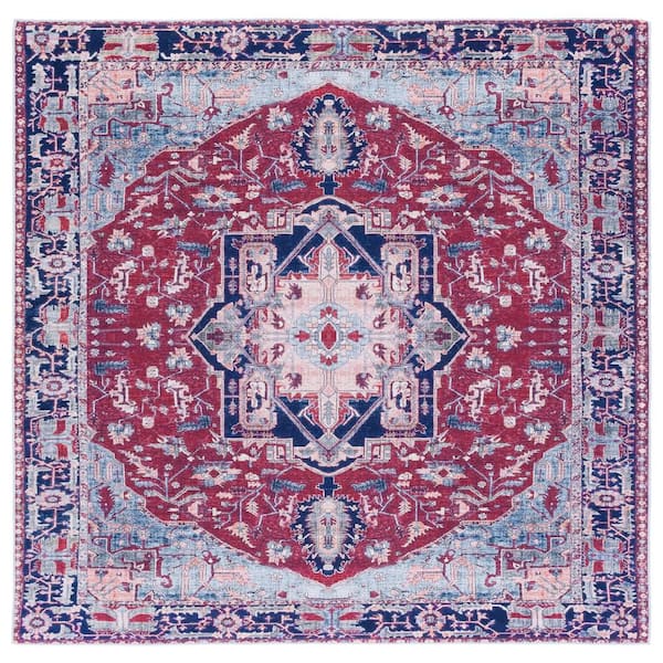 Tuscon Red/Navy 4 ft. x 4 ft. Machine Washable Border Floral Medallion Square Area Rug