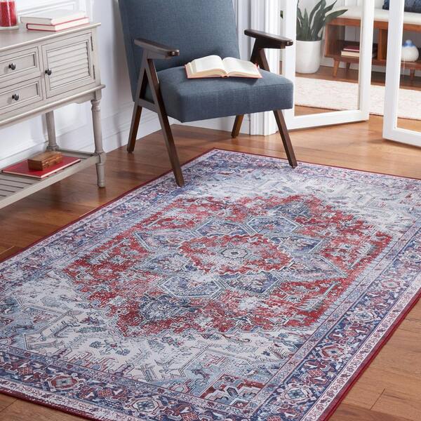 Tuscon Red/Navy 9 ft. x 12 ft. Machine Washable Floral Area Rug