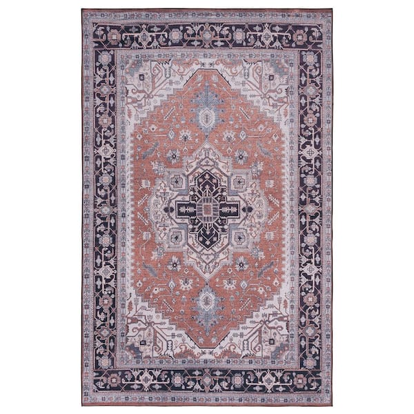 Tuscon Rust/Navy 9 ft. x 12 ft. Machine Washable Floral Medallion Area Rug