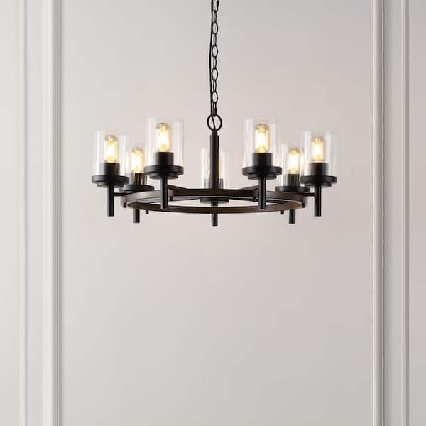 Vancouver 4-Watt 7-Light Black Pendant Light with Glass Shade