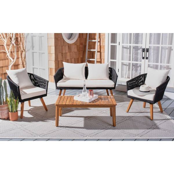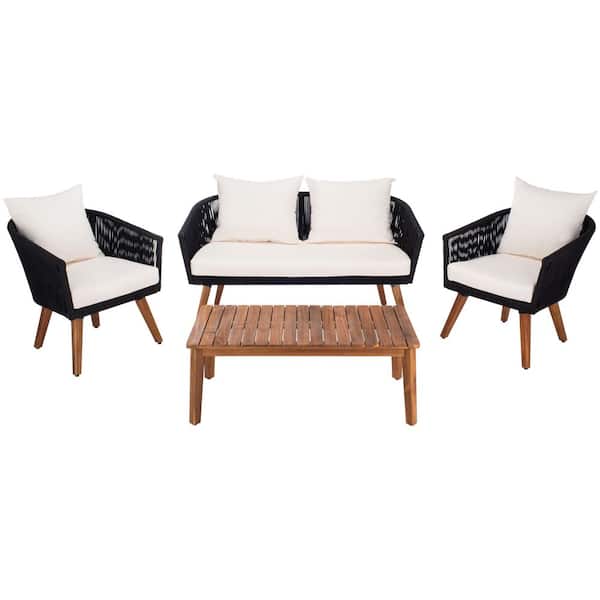 Velso Black 4-Piece Wood Patio Conversation Set with Beige Cushions
