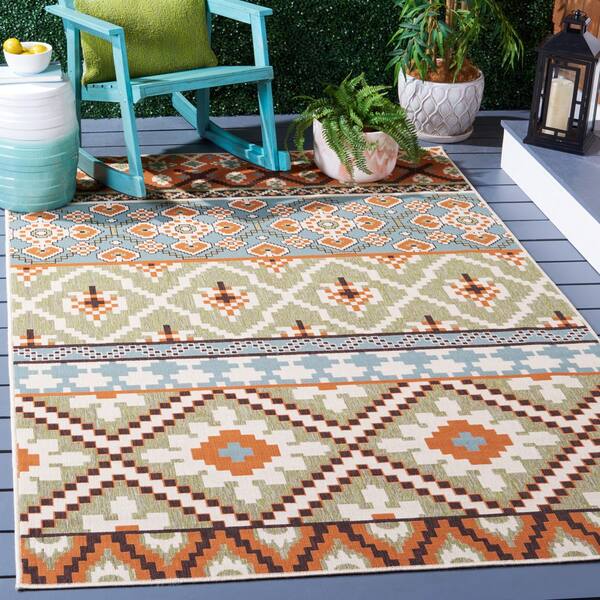 Veranda Green/Terracotta 7 ft. x 7 ft. Square Floral Indoor/Outdoor Patio Area Rug
