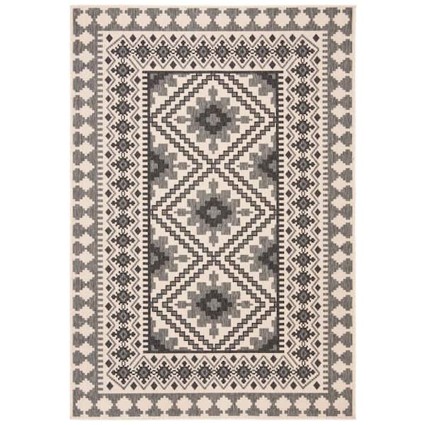 Veranda Ivory/Slate 5 ft. x 8 ft. Border Indoor/Outdoor Patio Area Rug