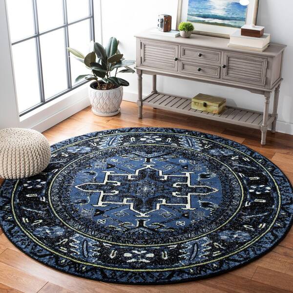 Vintage Hamadan Blue/Gray 5 ft. x 5 ft. Floral Border Round Area Rug