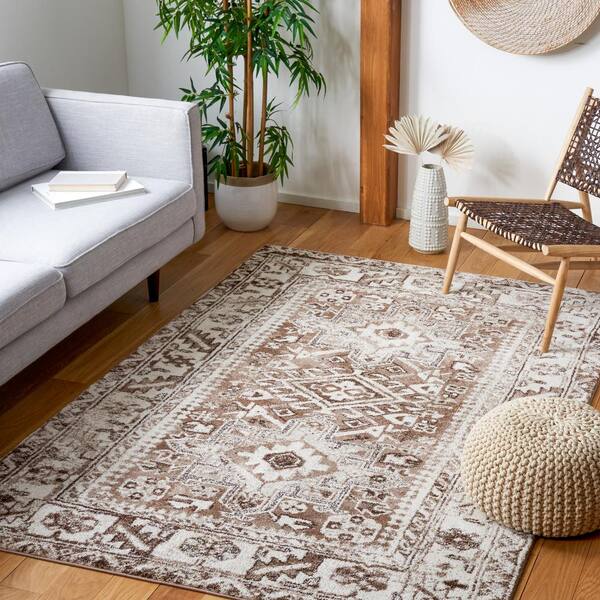 Vintage Hamadan Brown/Ivory 11 ft. x 14 ft. Floral Border Area Rug